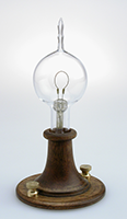 Heinrich Gobel, a German watchmaker who immigrated to New York, used a carbonized bamboo filament secured in a glass container for his Incandescent electric lamp design. -